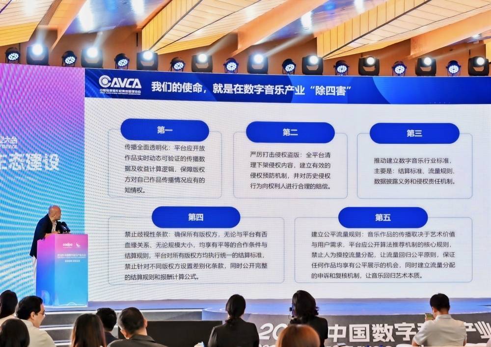 数据黑箱、差别对待……数字音乐行业"四害"引关注中国音像著作权集体管理协会副理事长兼总干事周亚平以"我国数字音乐产业的结构性问题及规制建议"为题发表演讲。他以一位老音乐人的身份,坦诚指出了流媒体平台存在的"四害"问题:数据黑箱、差别对待、算法操控和盗版纵容。