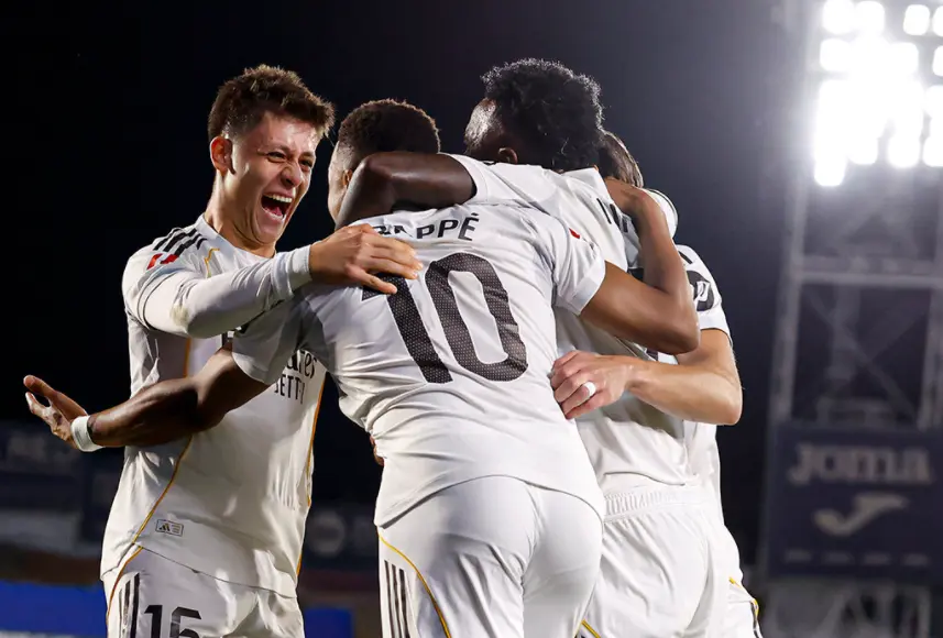 本场比赛皇马排出了4231阵型。姆巴佩顶在最前面。罗德里戈、贝林厄姆和马斯坦托诺的进攻组合联袂出击。卡马文加和楚阿梅尼组成双后腰。卡雷拉斯、阿拉巴、米利唐和巴尔韦德4后卫首发出战。库尔图瓦担任首发门将。维尼修斯、迪亚斯和贡萨洛-加西亚这3名前锋都坐在替补席待命。